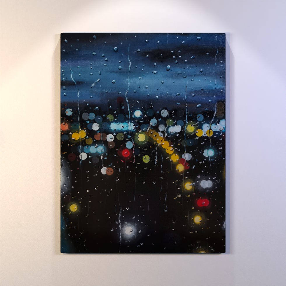 Rainy View II- A piece focusing on the the view from a rainy window at night.
